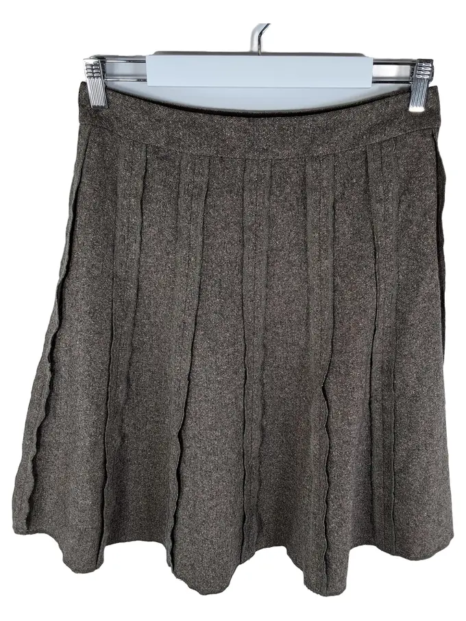 Collection Faltenrock Damen Gr. 34/XS Braun Wolle Midi