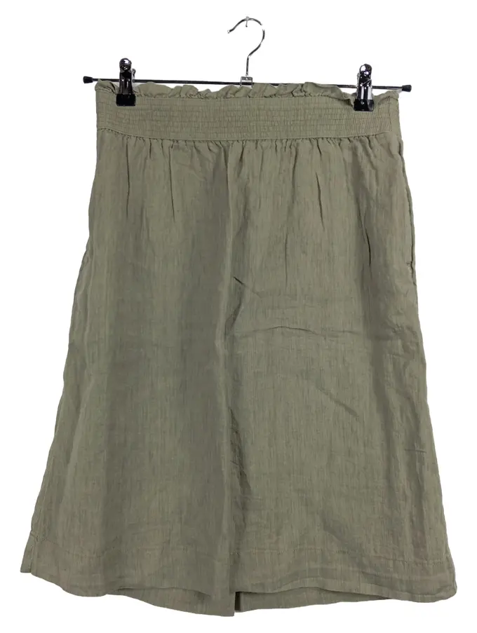 Damen A-Linienrock Leinen Oliv Gr. 38 geraffter Bund