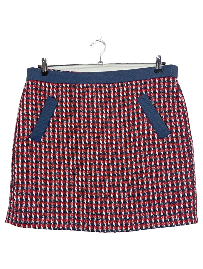 Damen A-Linienrock Minirock Gr. 42 Kariert Rot Blau Tweed
