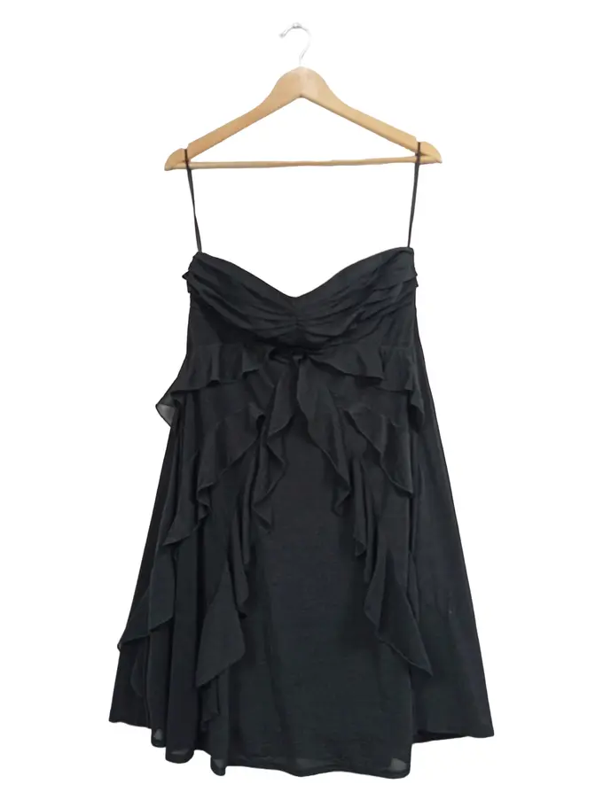Damen Abendkleid schulterfrei mit Rüschen Gr. 42/XL Schwarz Elegant