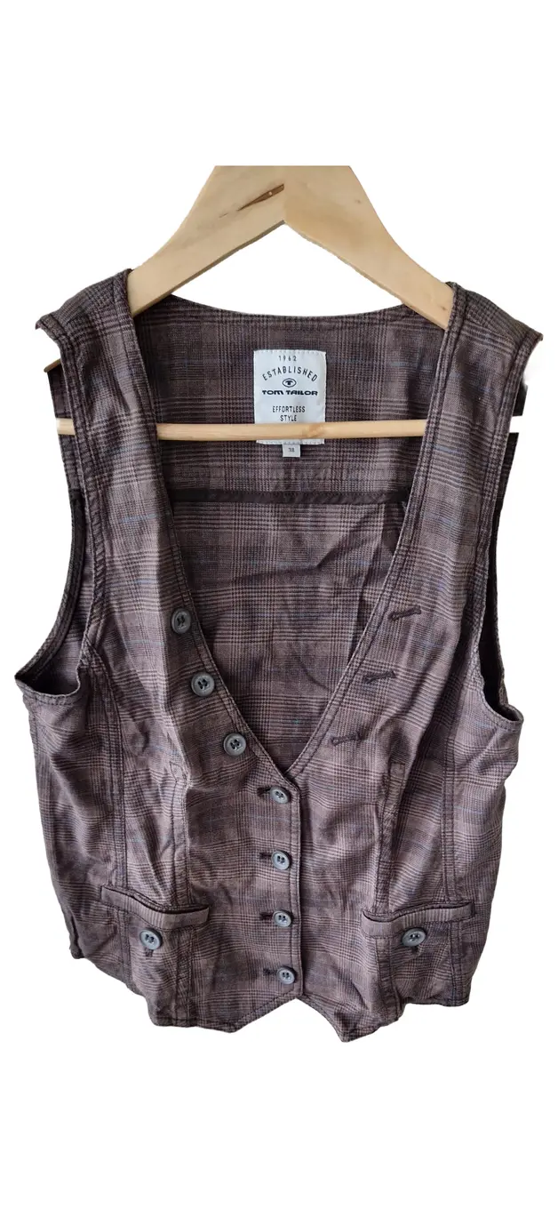 Damen Anzugweste Gr. 38 M Braun Kariert Casual Baumwolle