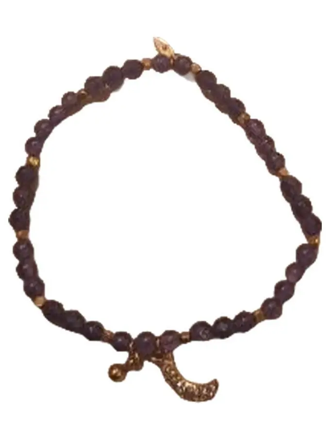 Damen Armband Amethyst Perlen Mond Anhänger Gold Lila 14,5cm