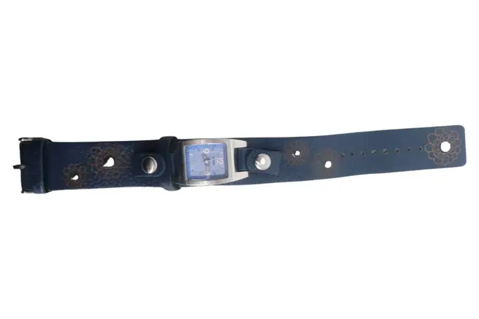 Damen Armbanduhr Blau Leder Edelstahl Vintage Bohemian Uhr