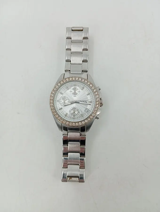 Damen Armbanduhr ES2681 Silber Elegant Edelstahl Strass Chronograph