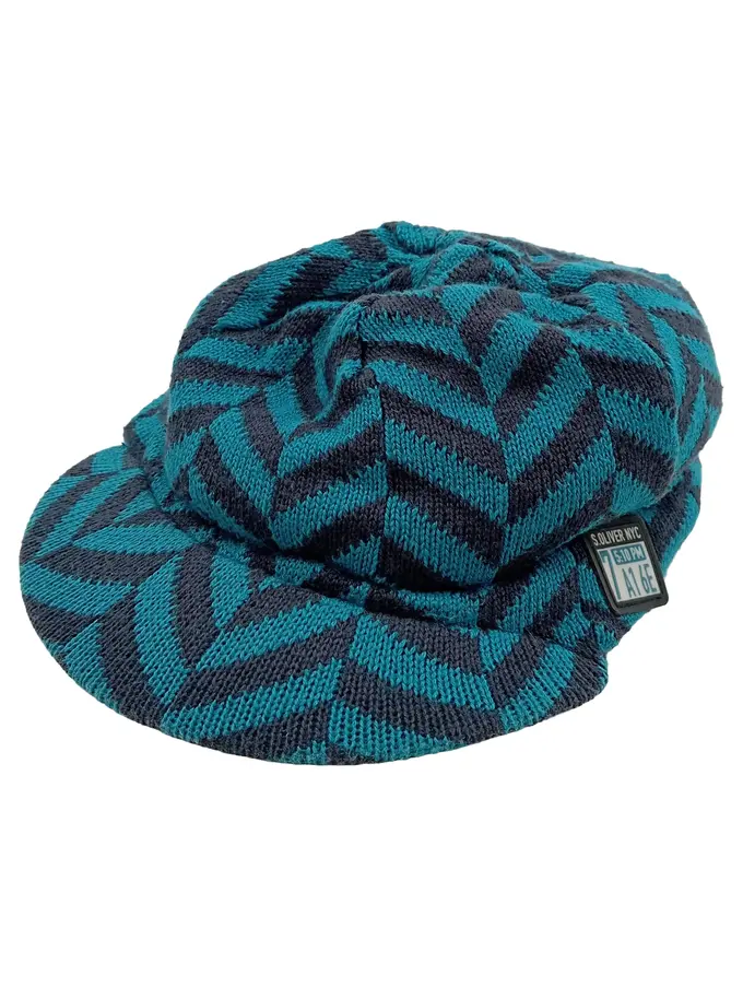 Damen Ballonmütze Strickmütze Türkis Grau Zickzack Muster