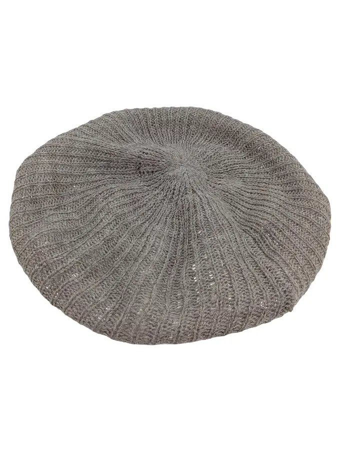 Damen Baskenmütze Strickmütze Grau Rippstrick