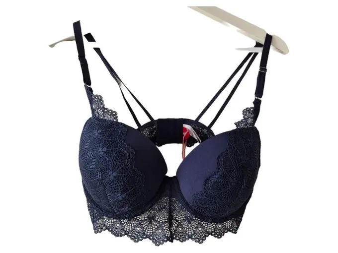 Damen BH Push-Up Spitze Dunkelblau Gr. 80C NEU mit Etikett