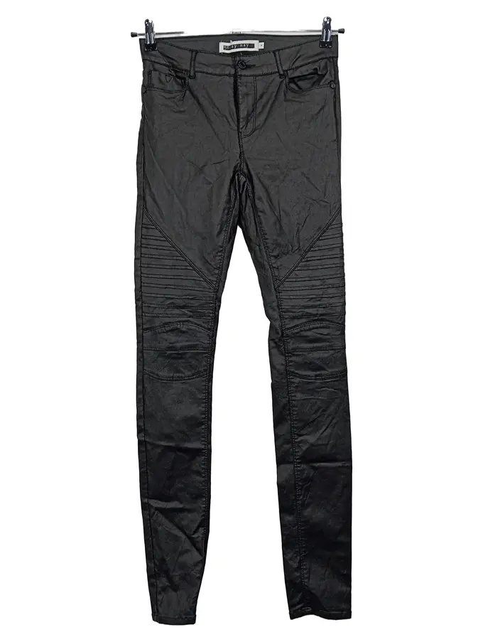 Damen Biker Hose Lederoptik Schwarz Gr. M/36 Skinny