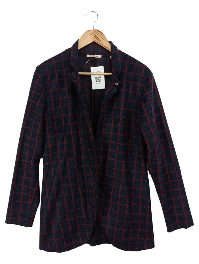 Damen Blazer 40/L Blau Kariert Wolle Elegant Business