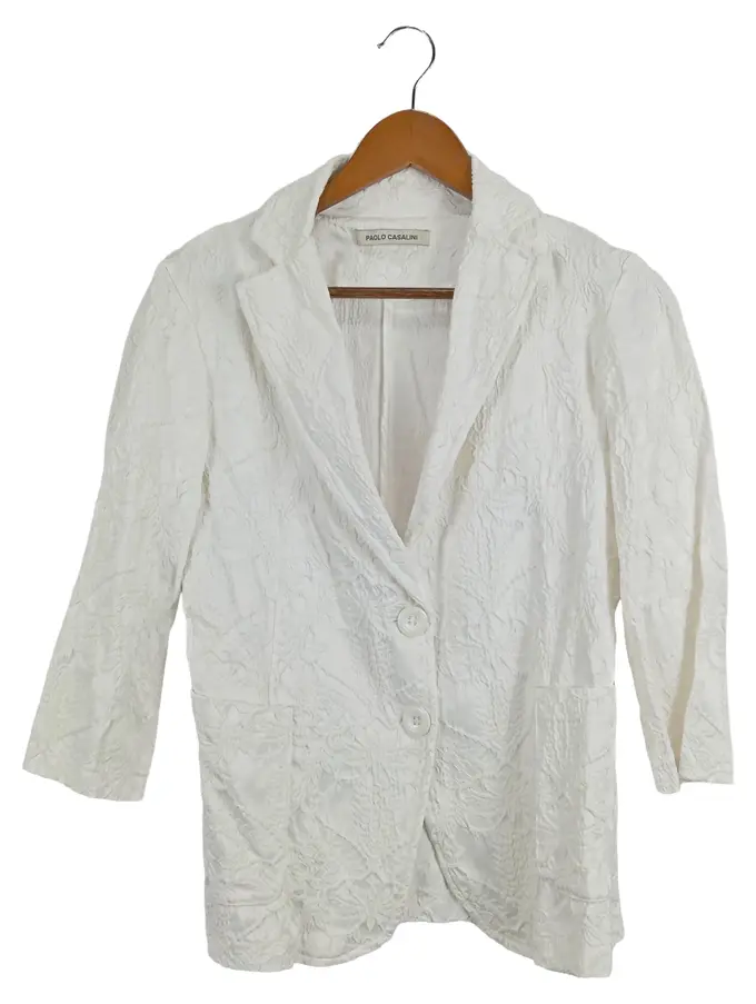 Damen Blazer 40/L Weiß Elegant Klassisch Strukturmuster