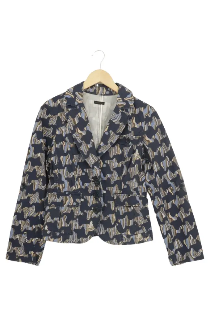 Damen Blazer Gr. 36/S Blau Grafisch Baumwolle Preppy Vintage