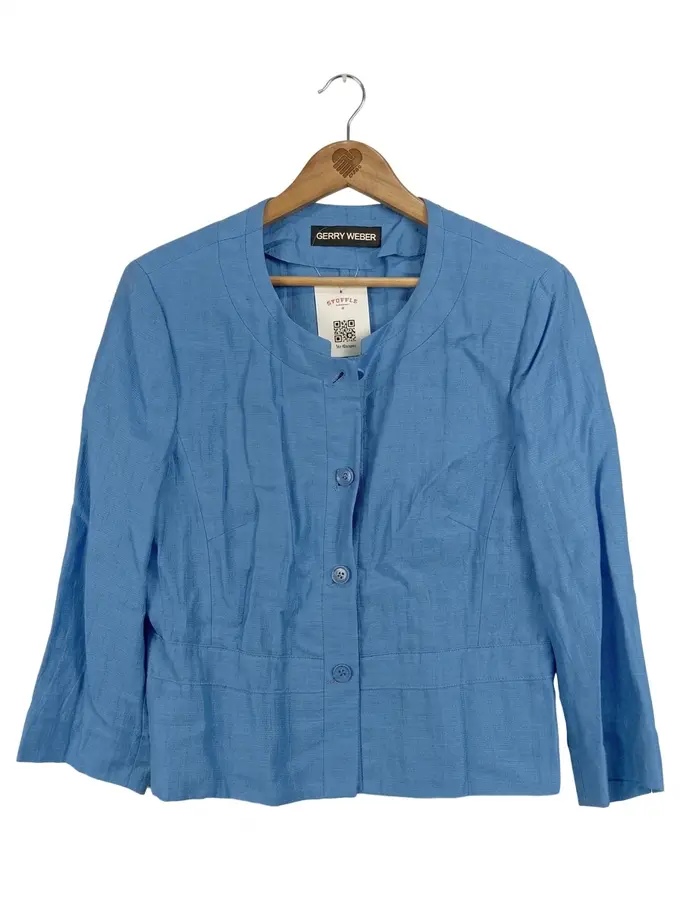 Damen Blazer Gr. 38 Blau Leinen Klassisch Business
