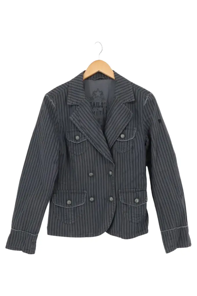 Damen Blazer Gr. 38/M Grau Gestreift Business Vintage Baumwolle