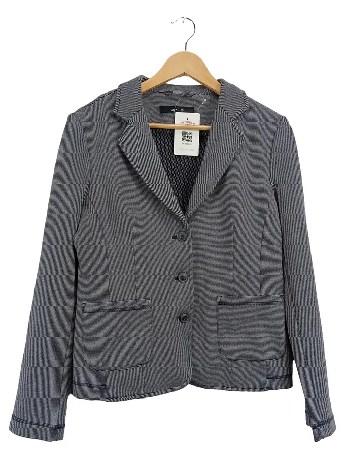 Damen Blazer Gr. 40 Grau Gestreift Stretch Business Modern