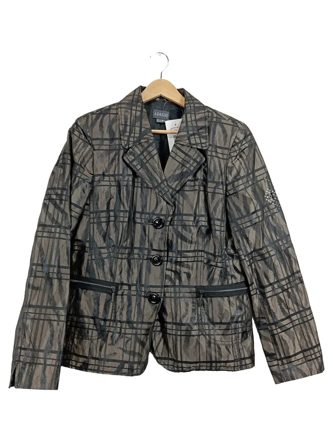 Damen Blazer Gr. 40 Grau Kariert Strass Elegant Business Jacke