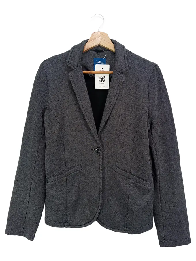 Damen Blazer Gr. 40/L Grau Klassisch Elegant Baumwolle