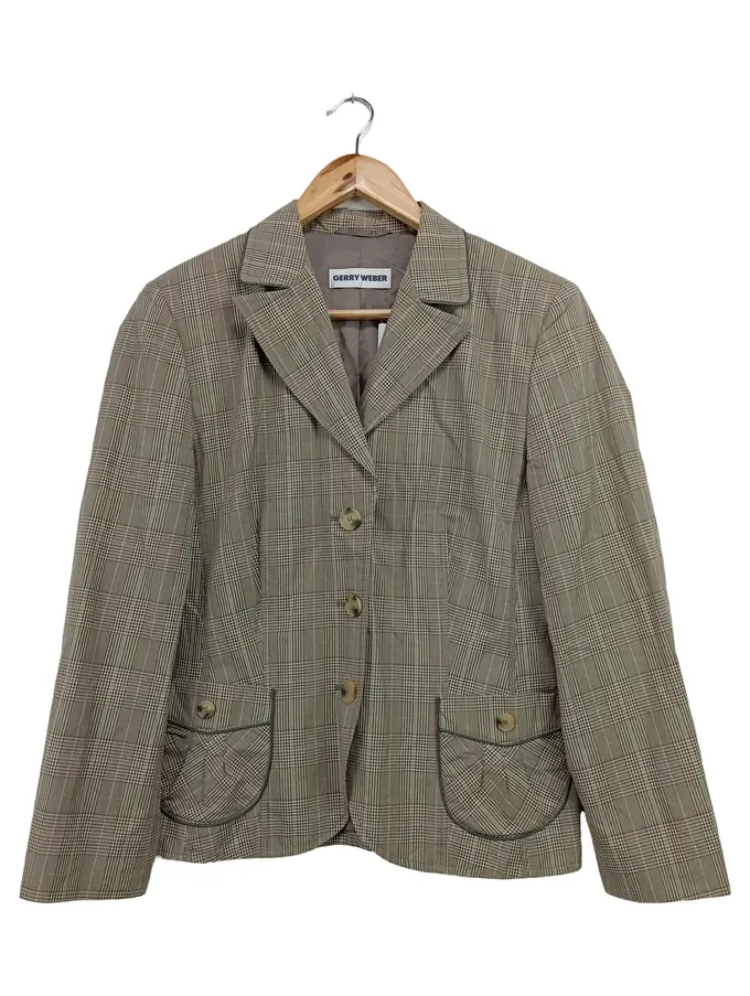 Damen Blazer Gr. 40/M Grau Kariert Klassisch Elegant Business