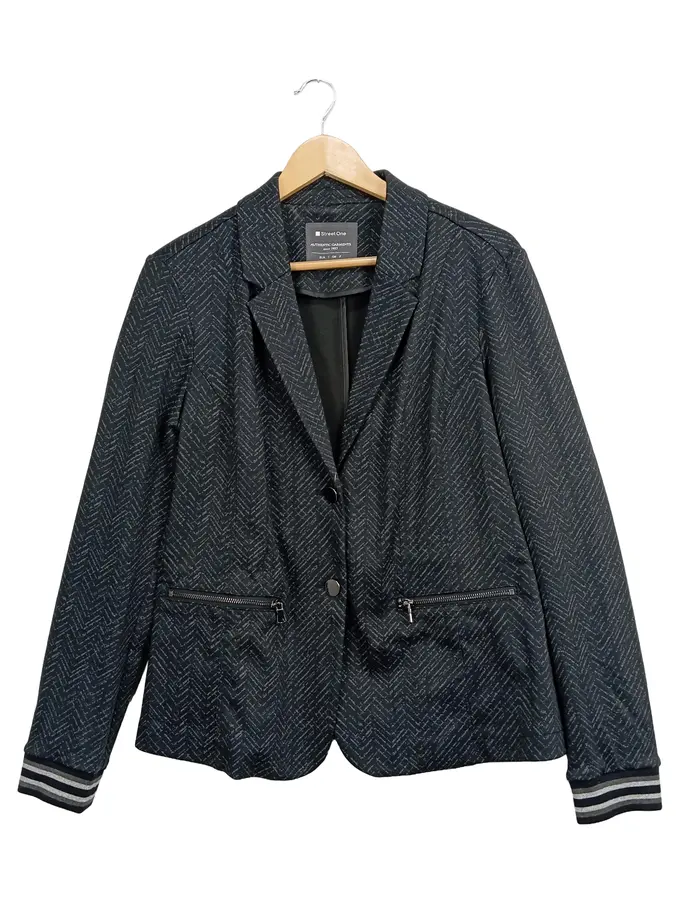 Damen Blazer Gr. 42 Grau Business Grafisch