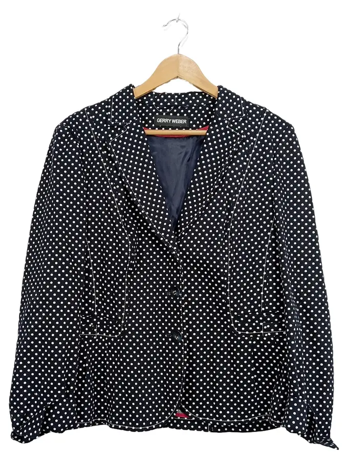 Damen Blazer Gr. 42 Schwarz Weiß Punkte Polka Dots