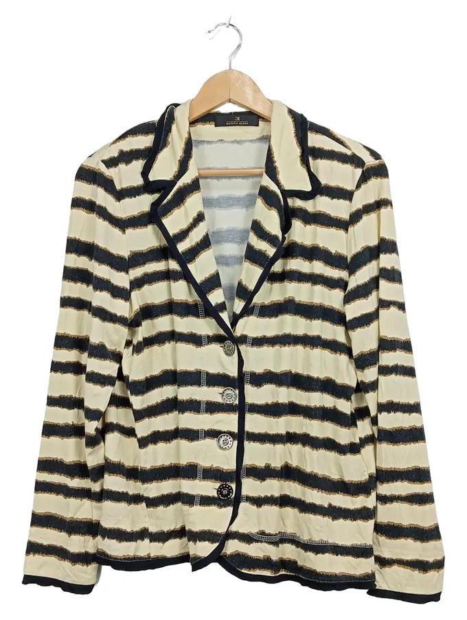 Damen Blazer Gr. 44 Beige Gestreift Viskose Casual