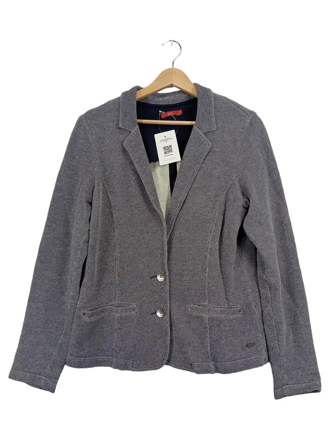 Damen Blazer Gr. M Grau Gestreift Casual Baumwolle