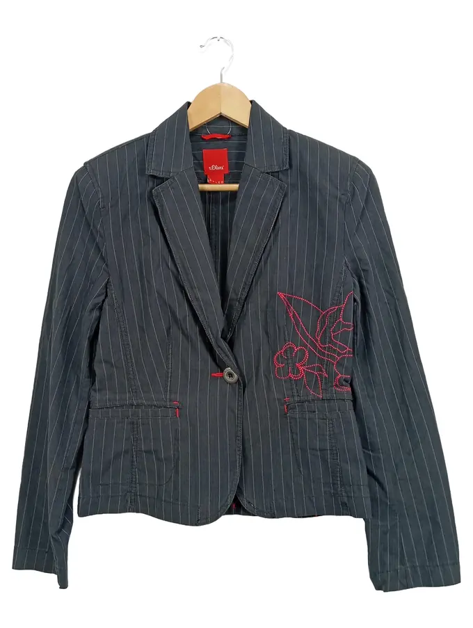 Damen Blazer Grau Gestreift Stickerei Gr. 38