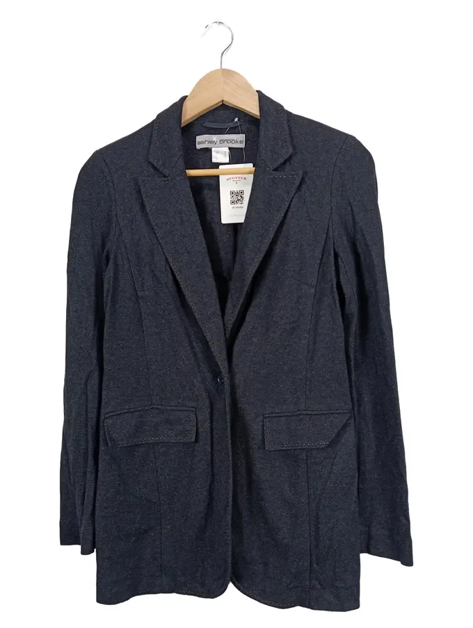 Damen Blazer Grau Gr. 34/XS Business Langarm Stickerei