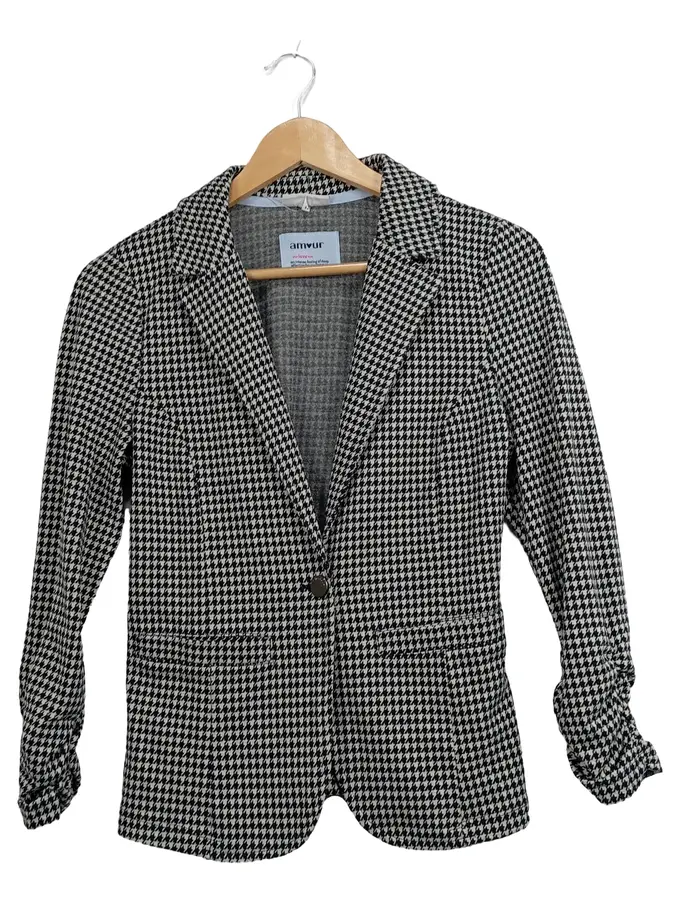 Damen Blazer Hahnentritt Gr. 34/XS Schwarz Weiß Business