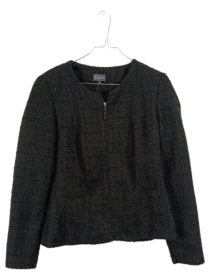 Damen Blazer Jacke Bouclé Tweed Gr. 38 Schwarz Elegant