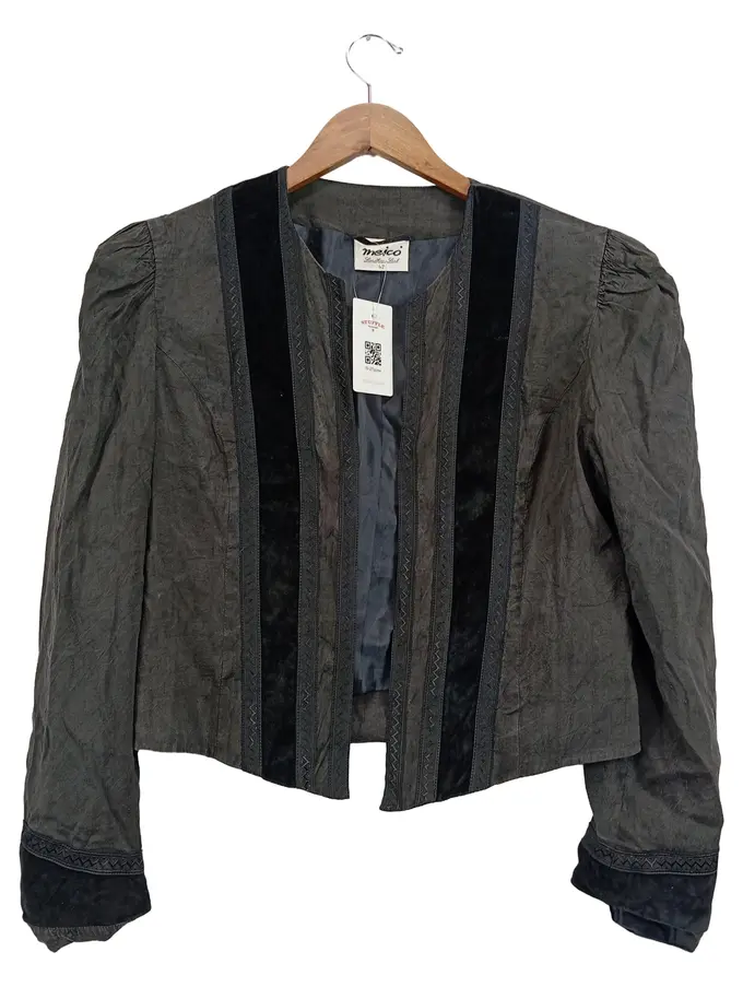 Damen Blazer Jacke Gr. 42/XL Grau Vintage Seide Elegant