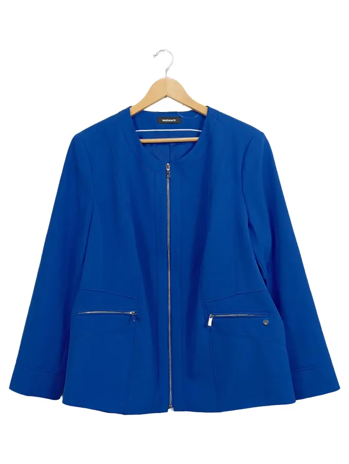 Damen Blazer Jacke Gr. 48 Blau Business Reißverschluss Taschen