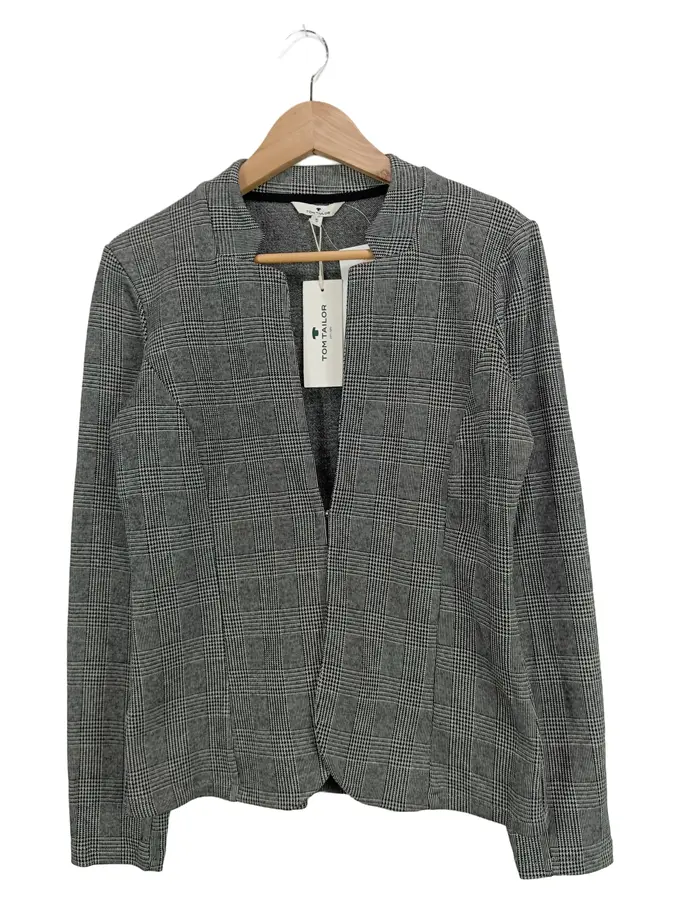 Damen Blazer kariert Grau Gr. 36/S Business Langarm Baumwolle
