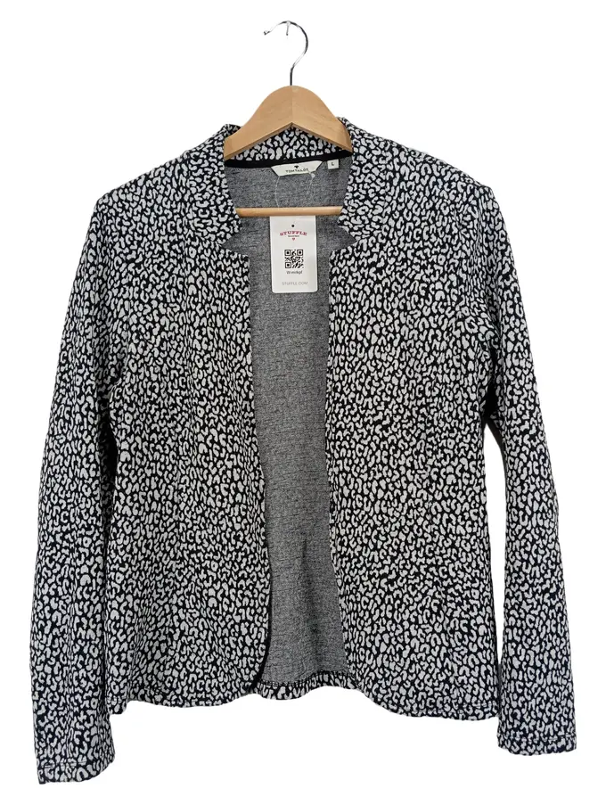 Damen Blazer Leopard Animal Print Schwarz Weiß Gr. L 42