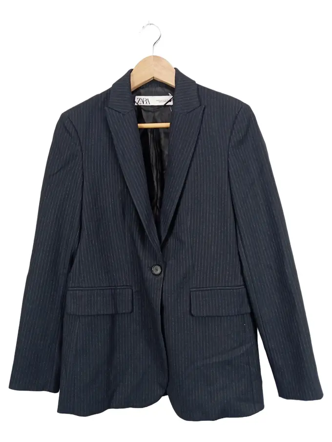 Damen Blazer Nadelstreifen Business Schwarz Gr. 34/XS
