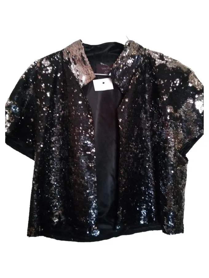 Damen Blazer Pailletten Jacke Schwarz Gr. 38/M Glamourös