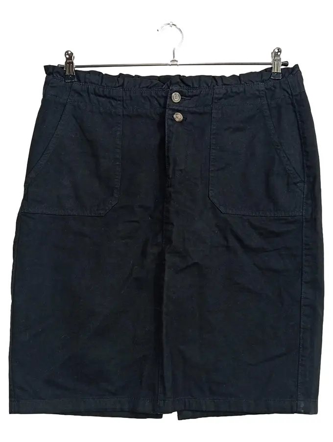 Damen Bleistiftrock Gr. 42 Schwarz Klassisch Baumwolle Midi