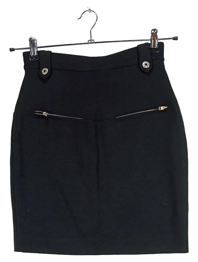 Damen Bleistiftrock Schwarz Gr. 34/XS Zierknöpfe Stretch