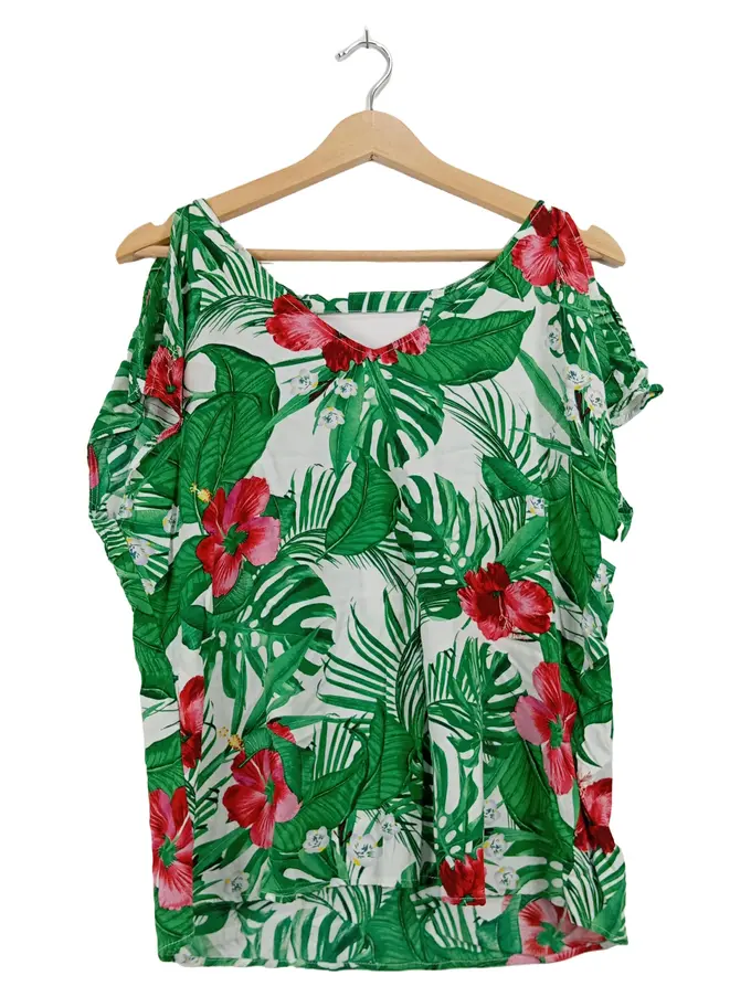 Damen Blumenmuster Top Kurzarm Gr. 38 Freizeit Rüschen