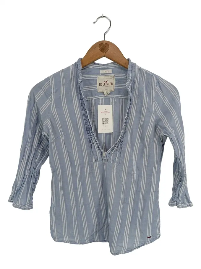 Damen Bluse 3/4 Arm Blau Gestreift Baumwolle Gr. S Casual