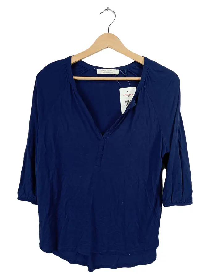 Damen Bluse 3/4-Arm Dunkelblau V-Ausschnitt Gr. XS/34