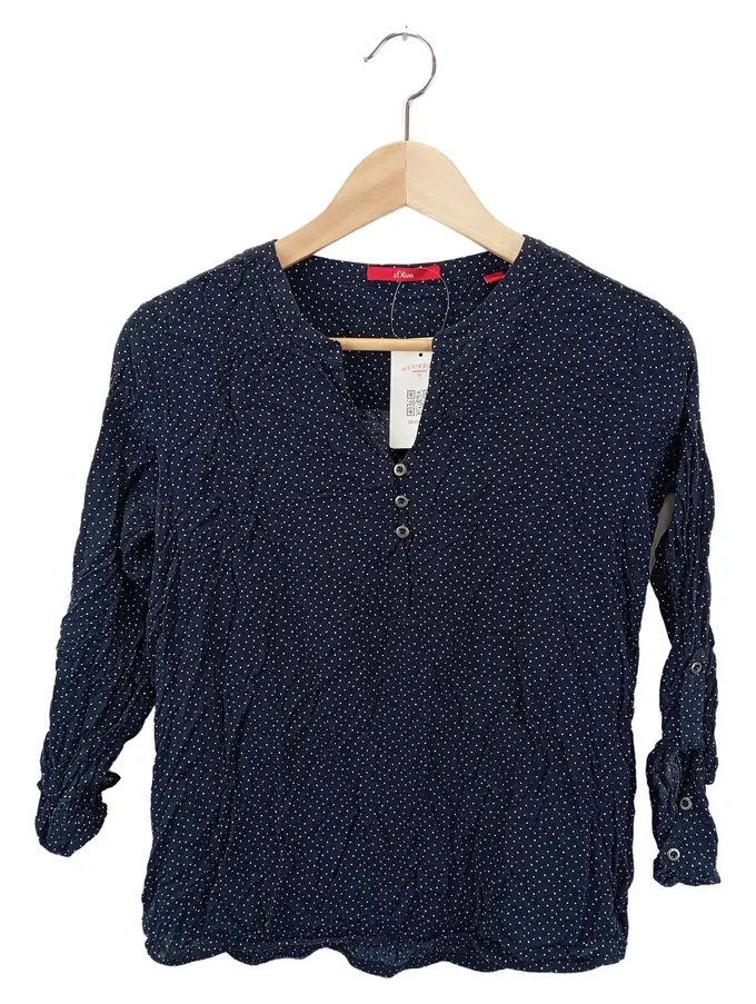 Damen Bluse 3/4 Arm Punkte Blau Gr. 36/S Viskose Elegant