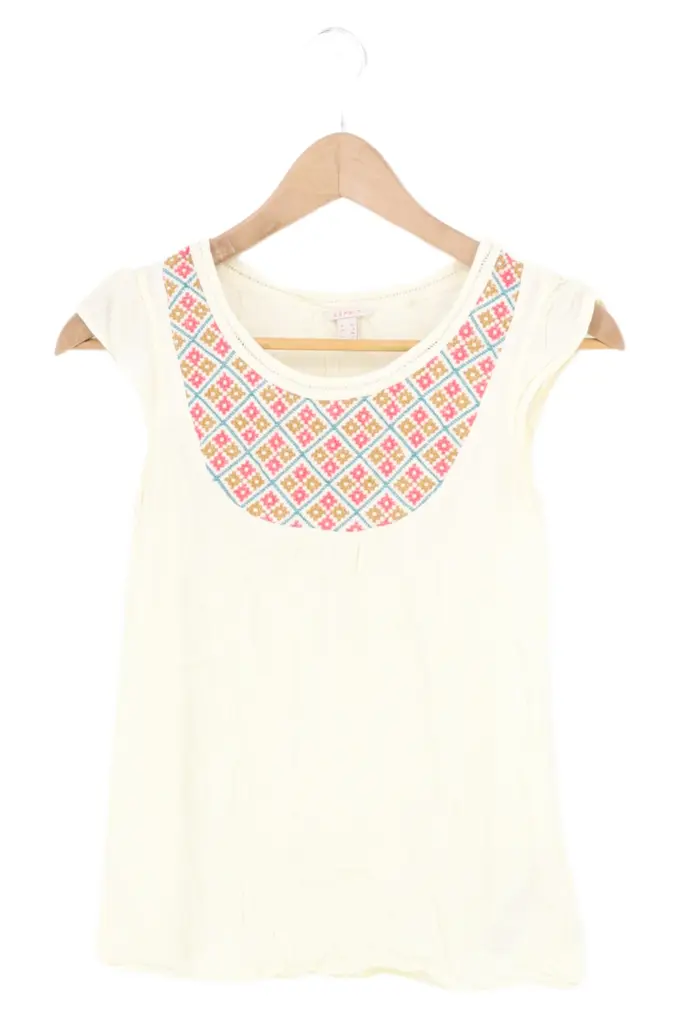 Damen Bluse 32/XXS Beige Bohemian Stickerei Kurzarm