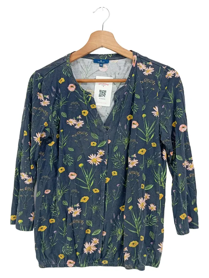 Damen Bluse 34/XS Blau Florales Muster Bohemian