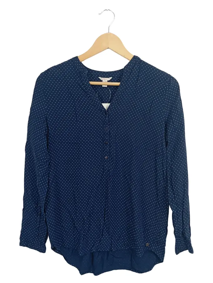 Damen Bluse 36 Blau Punkte Casual Langarm Viskose