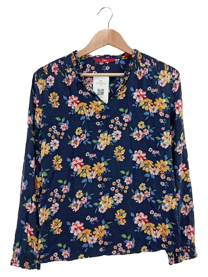Damen Bluse 36/S Blau Blumenmuster Bohemian Langarm