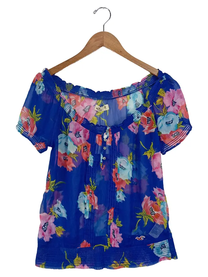 Damen Bluse 38/M Blumenmuster Kurzarm Feminin