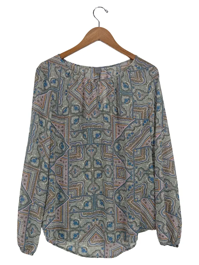 Damen Bluse 42 XL Mehrfarbig Paisley Print Casual Langarm