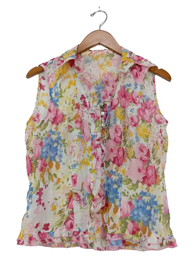 Damen Bluse Ärmellos Blumenmuster Gr. 38/M Mehrfarbig Feminin