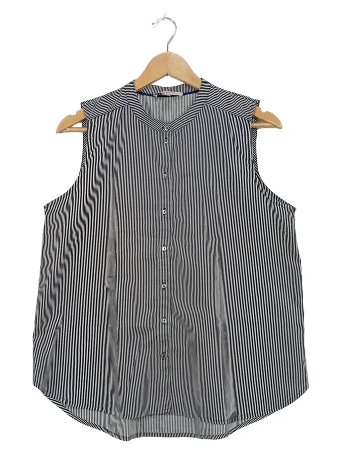 Damen Bluse ärmellos gestreift blau weiß Gr. 38 M Baumwolle
