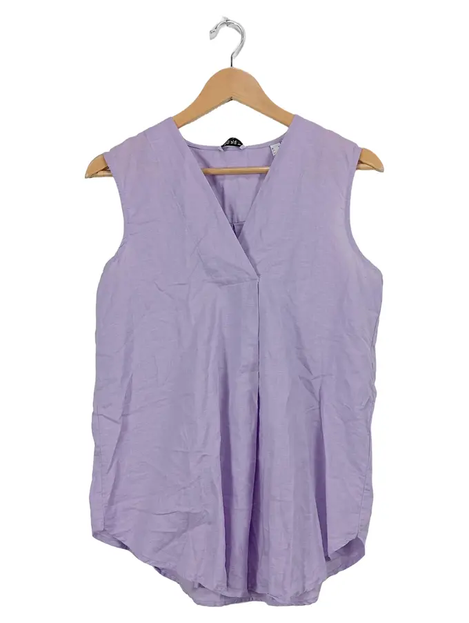Damen Bluse ärmellos Gr. M Lila Leinen Baumwolle V-Ausschnitt